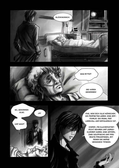 Im Rahmen des Comicstars Wettbewerb sollten die Teilnehmer der zweiten Runde einen vorgefertigten Dialog in zwei Comicseiten umsetzen. Die Panelanzahl war dabei ebenfalls vorgegeben. Mit diesem Beitrag schaffte ich es unter die letzten 10 Kandidaten und in die 3. Runde.